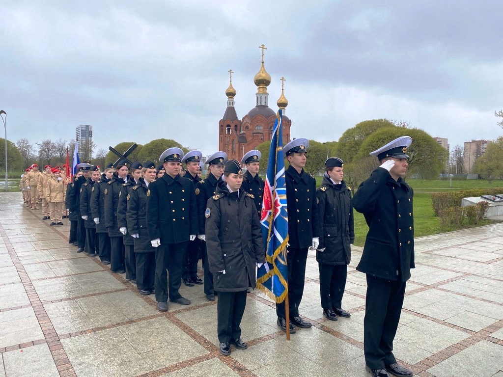 7 мая курсанты парадного расчета третьей площадки Морской технической академии имени адмирала Д.Н. Сенявина под руководством преподавателя-организатора Николая Викторовича Красноперова стали участниками церемонии возложения цветов и венков к мемориалу «Рубеж» – символу мужества и стойкости.